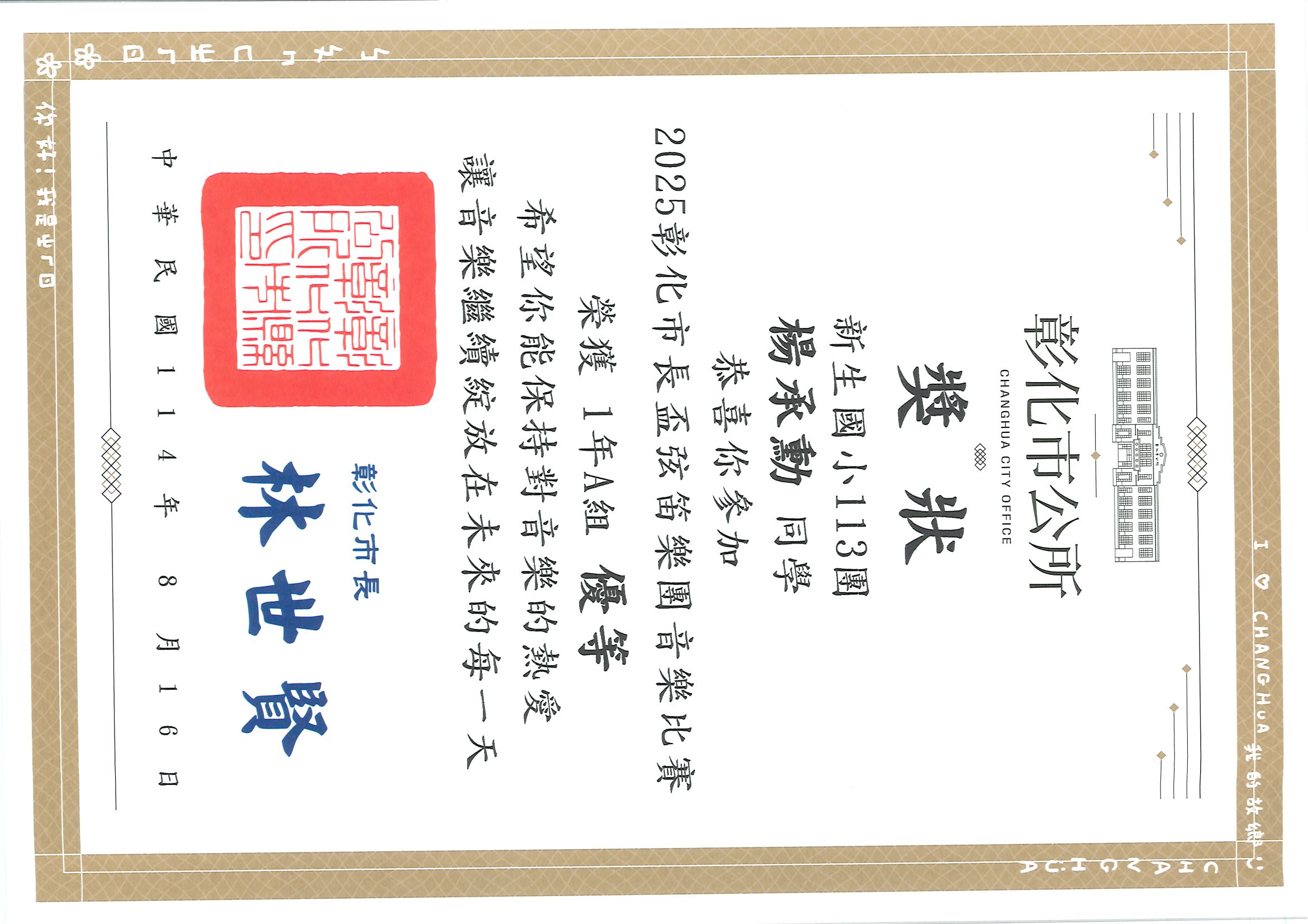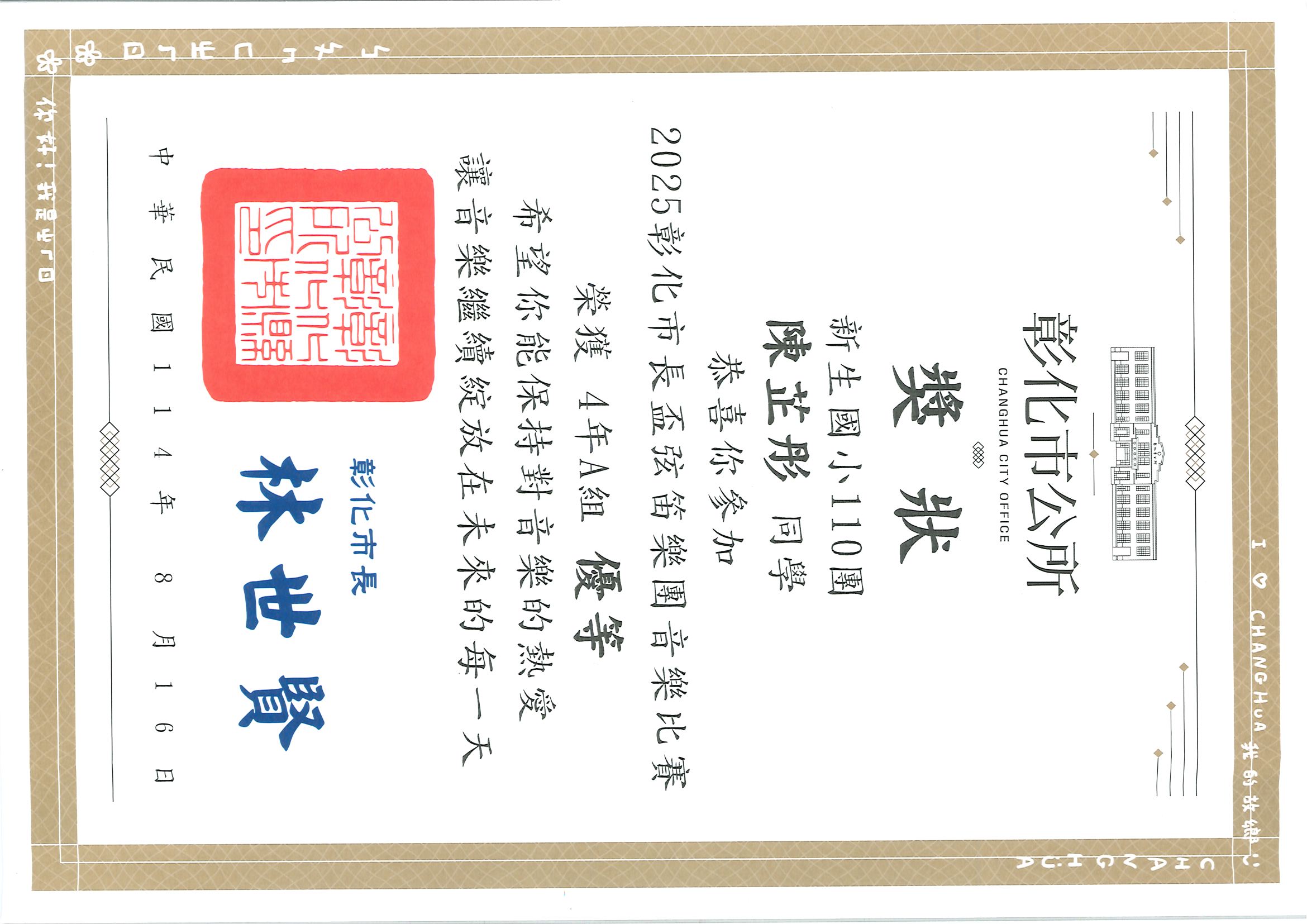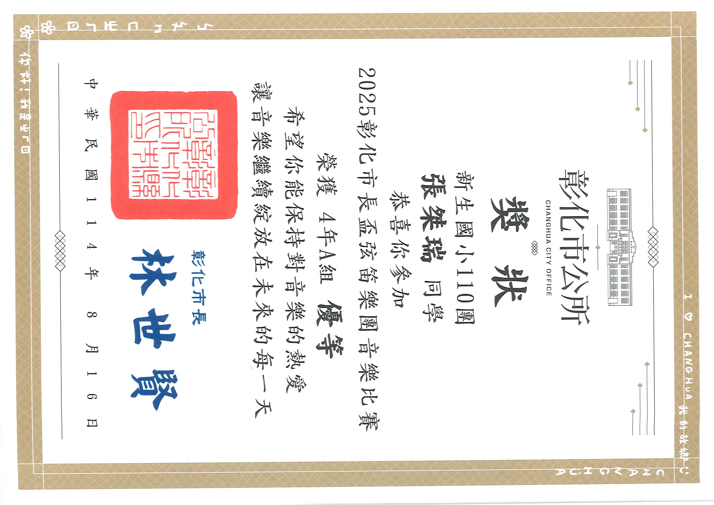 初階班 一甲楊承勳、蔡汶芯、二甲陳柏任、楊喬茵、四甲魏妍樺、