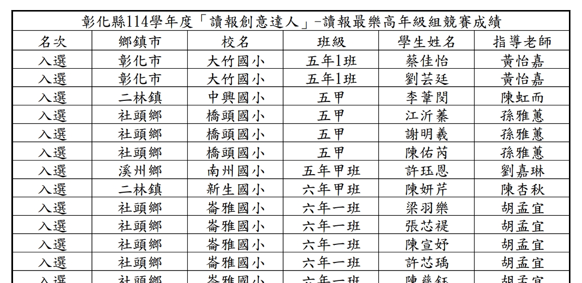 六甲陳妍芹同學榮獲彰化縣114學年度「讀報創意達人」-讀報最樂高年級組競賽入選.jpg